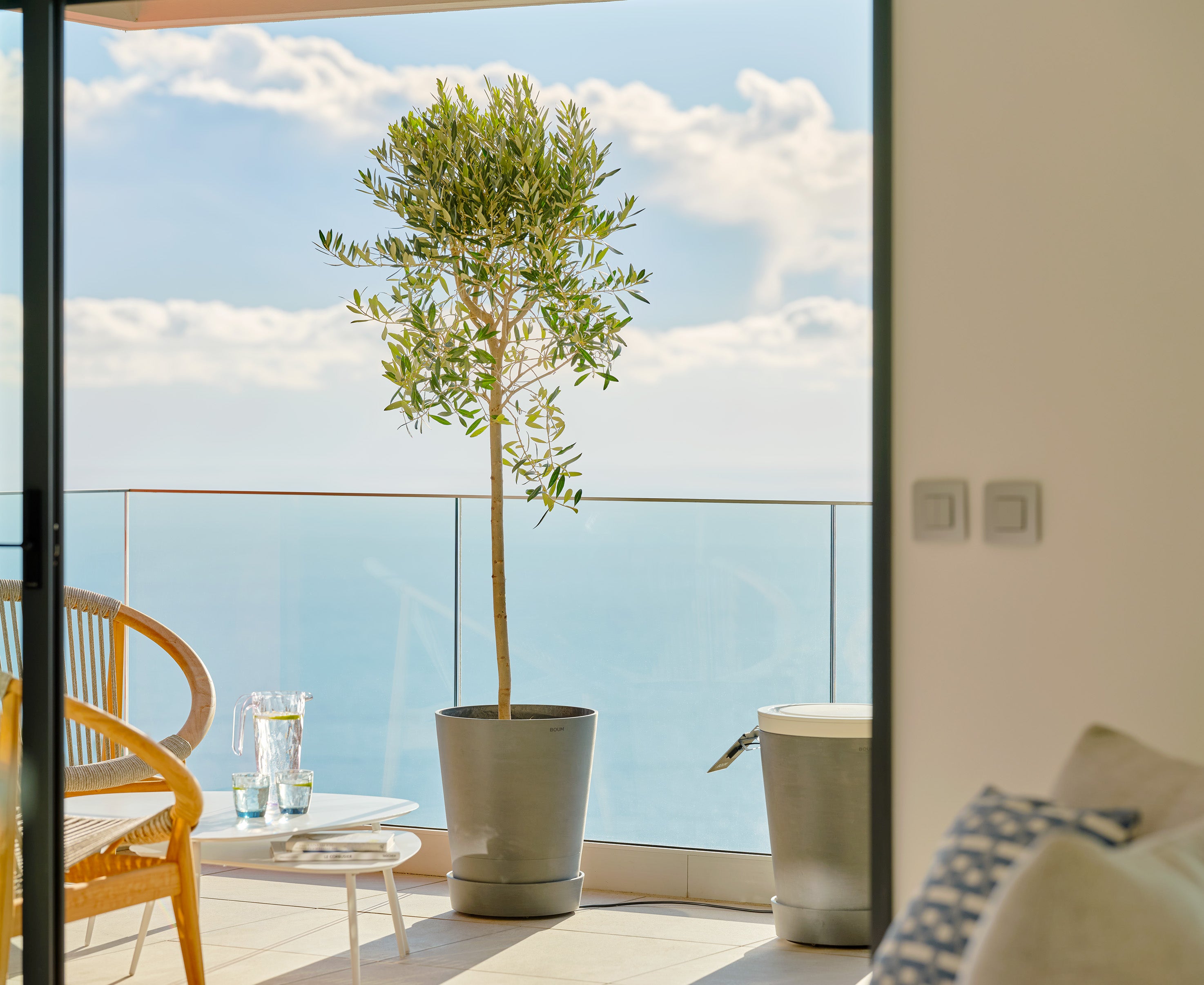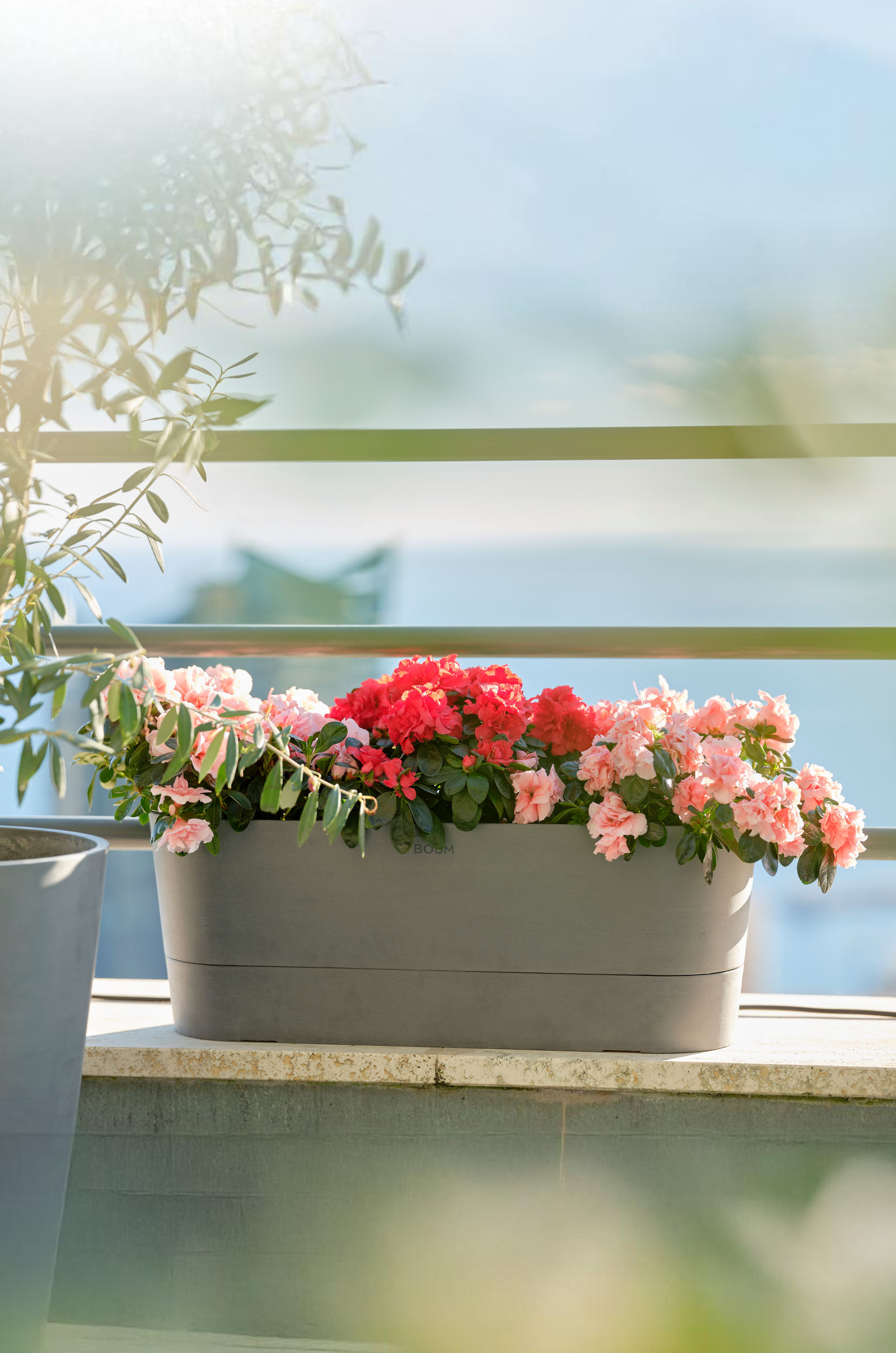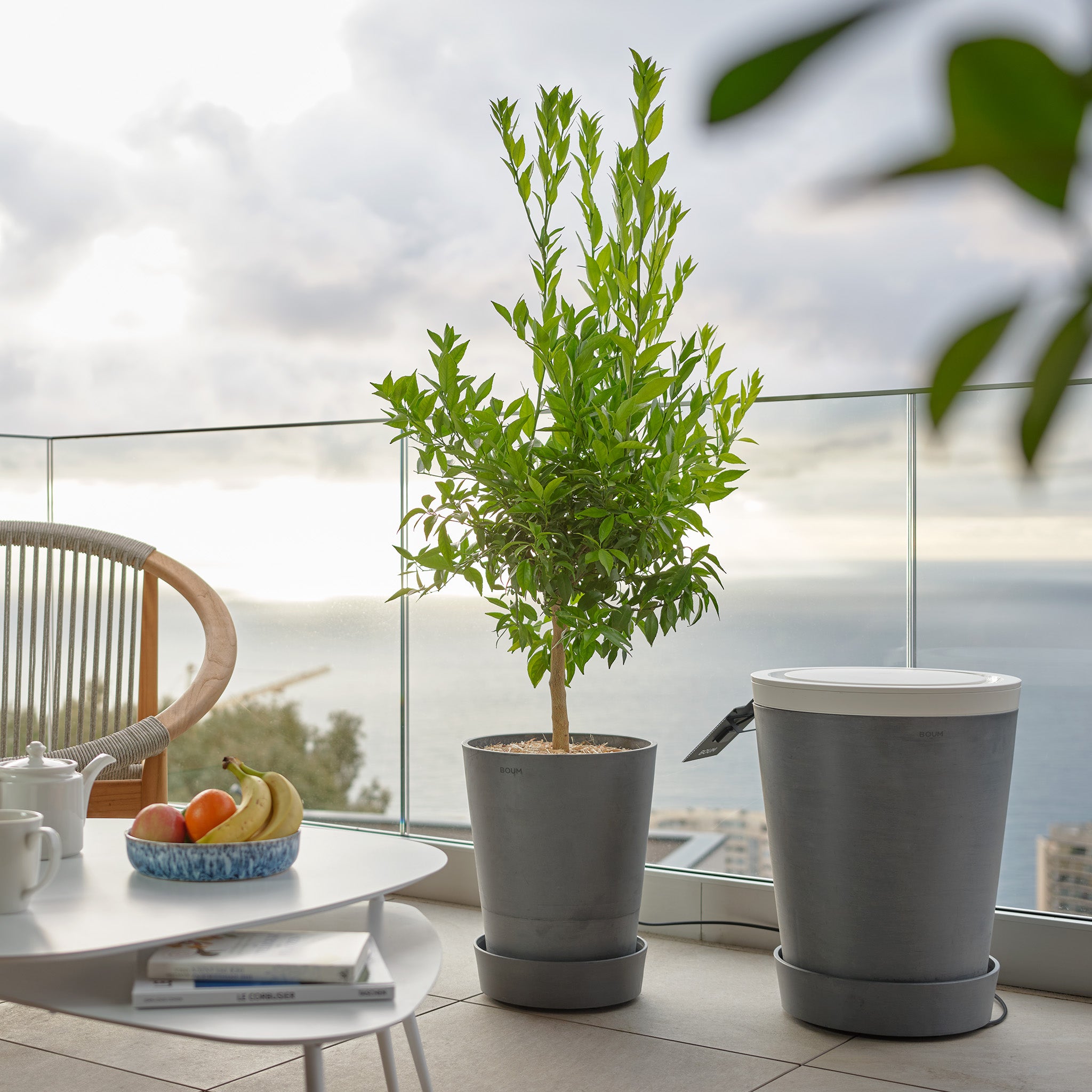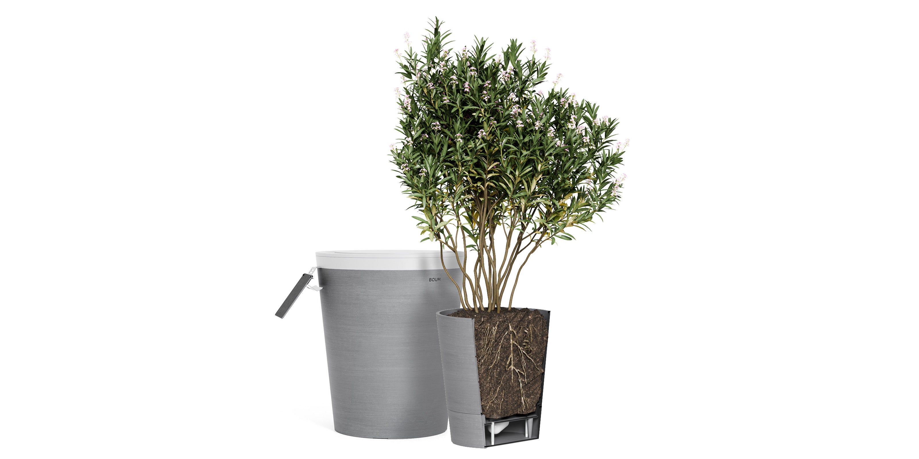 Boum Tanks und Pflanzgefässe kommen neu in drei zeitlosen Farben: Grau, Taupe und Weiss. Ein 30 L Topf für grosse Pflanzen ist auch dabei. Damit fügt sich das Boum System dezent in jede Umgebung ein.