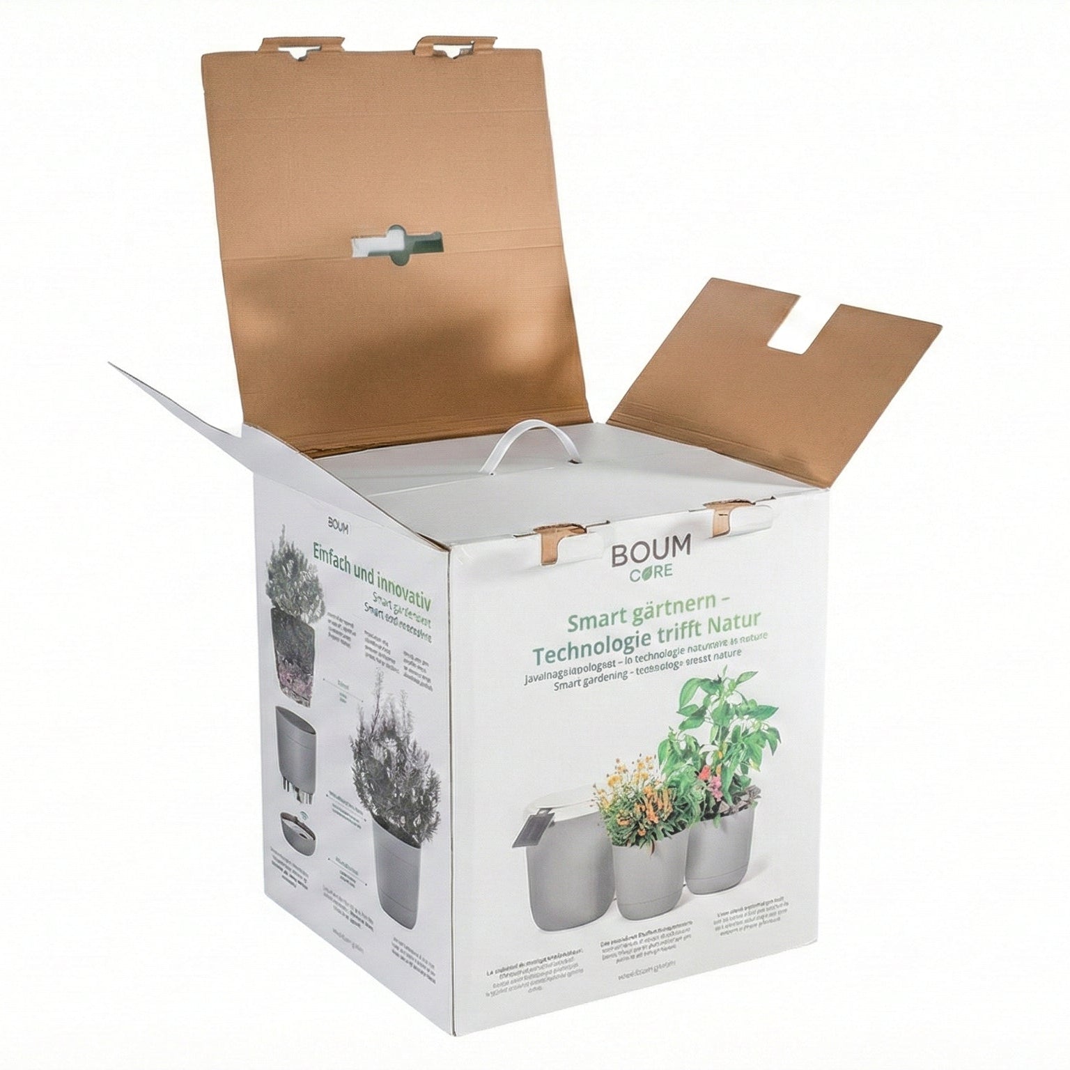 Pünktlich zum Start der Gartensaison Anfang März 2026 bekommst du dein Boum Core Set direkt nach Hause geliefert. Wir informieren dich, sobald dein Paket versandfertig ist. Den genauen Liefertermin kannst du dann individuell anpassen. Das System ist schnell aufgebaut, so dass du sofort mit dem Gärtnern loslegen kannst.