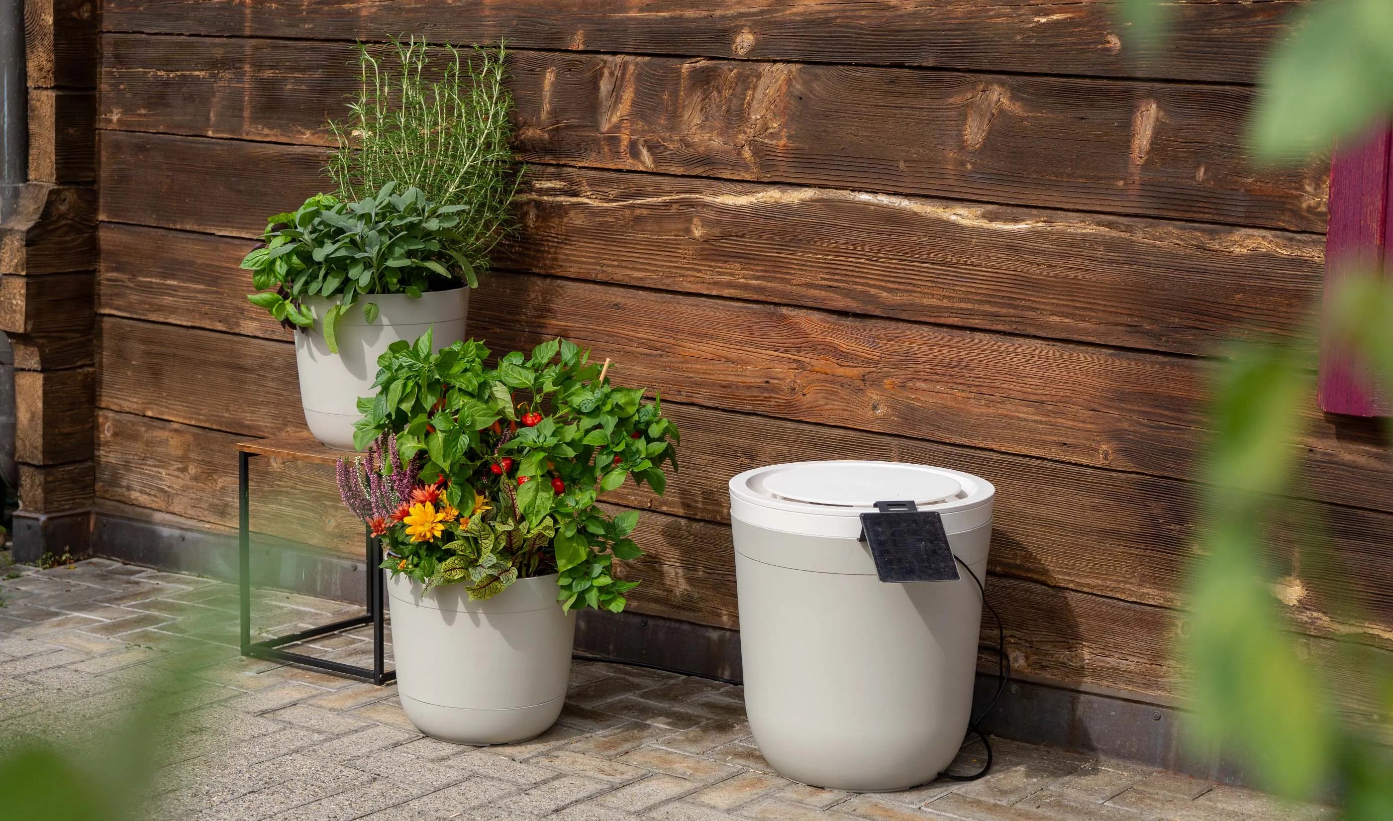 Das hängt von mehreren Faktoren ab: Standort (Sonne oder Schatten), Pflanzenart, Anzahl der Töpfe pro Tank und natürlich vom Wetter. Tests haben gezeigt, dass auf Balkon und Terrasse im Hochsommer pro Topf täglich etwa 0,5–0,8 Liter verbraucht werden. Bei zwei angeschlossenen Töpfen muss der Wassertank erst nach etwa drei bis vier Wochen wieder gefüllt werden. Du kannst also unbesorgt in den Urlaub fahren!