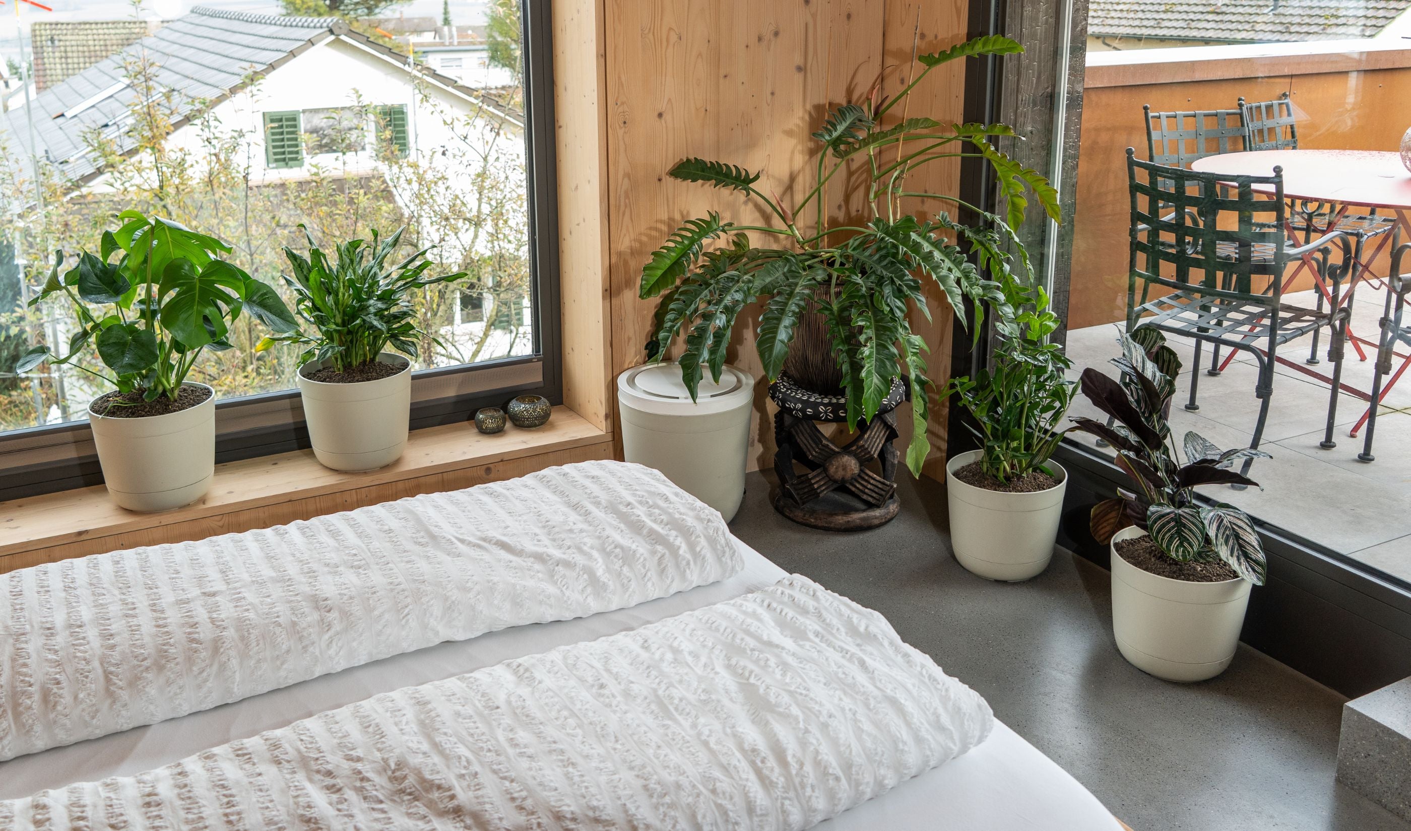 Grundsätzlich kannst du Erde und Pflanzen deiner Gärtnerei nutzen. Wichtig ist, dass die Pflanze zur Topfgrösse passt. Wir haben viele Pflanzen getestet, entsprechende Empfehlungen mit den jeweiligen Topfgrössen findest du auf unserer Website und in der Boum App.