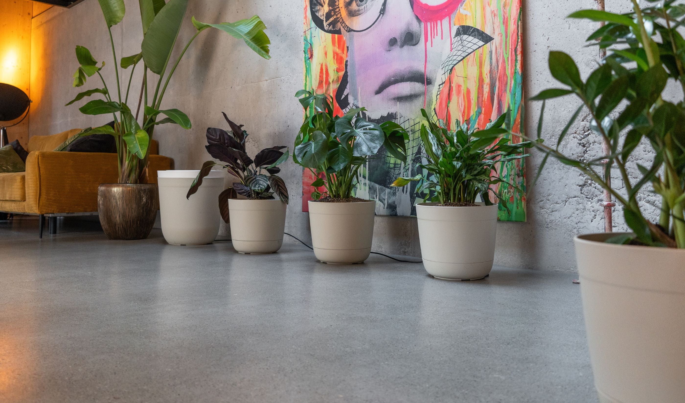 Unsere selbstregulierende Docht- oder Tröpfchenbewässerung spart bis zu 40% Wasser im Vergleich zu anderen Lösungen.