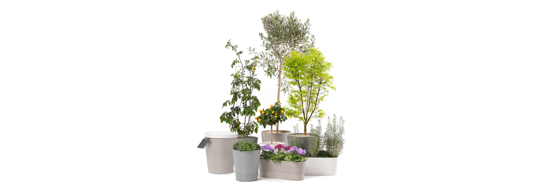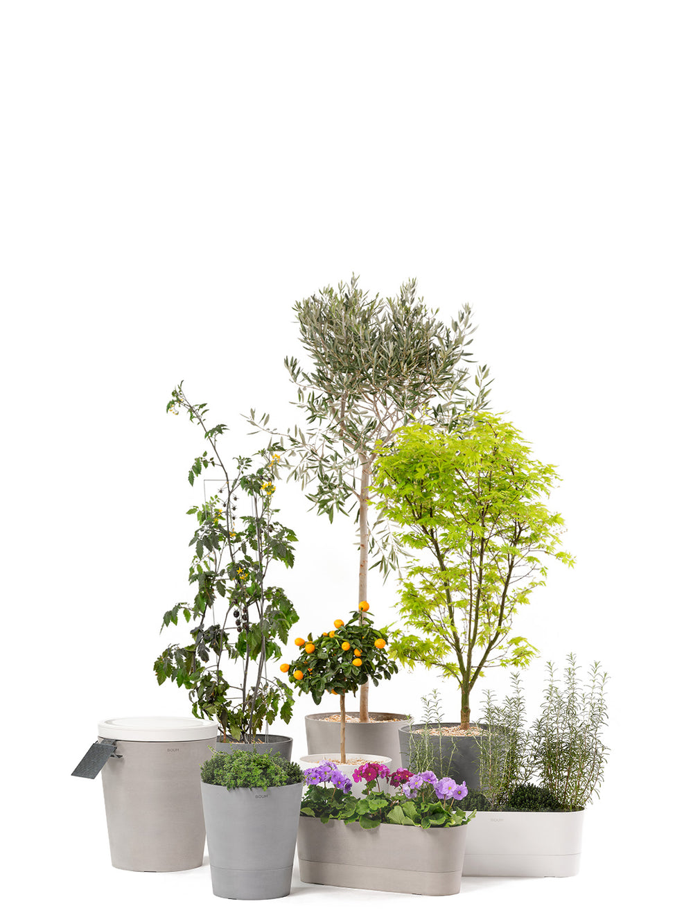 Boum Tanks und Pflanzgefässe kommen neu in drei zeitlosen Farben: Grau, Taupe und Weiss. Ein 30 L Topf für grosse Pflanzen ist auch dabei. Damit fügt sich das Boum System dezent in jede Umgebung ein.