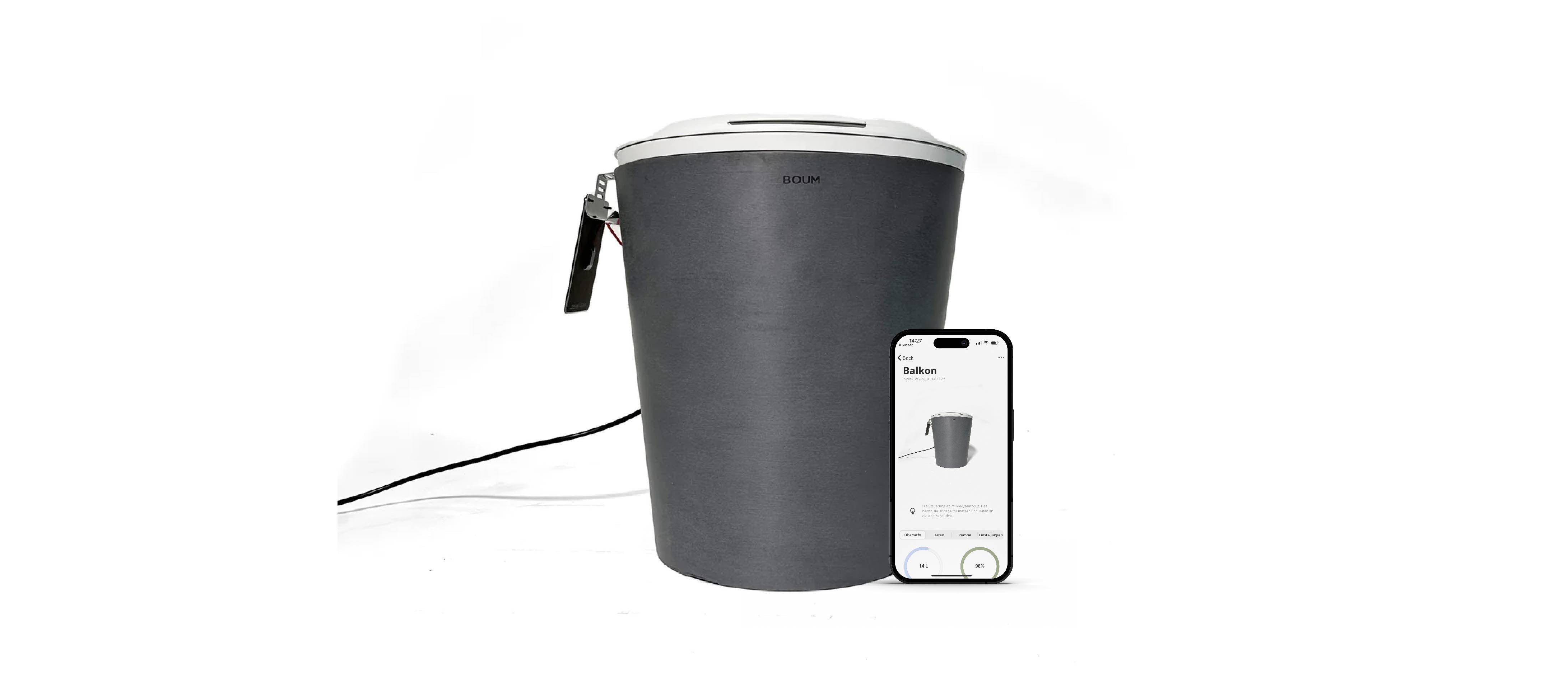 Wasserstand und Temperatursensoren steuern die Bewässerung über die Boum App.